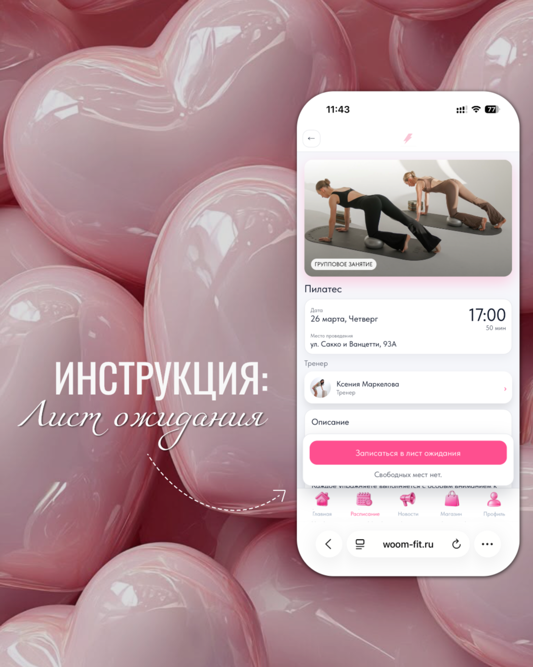 Если в группе нет свободных мест, вы можете записаться в лист ожидания.
